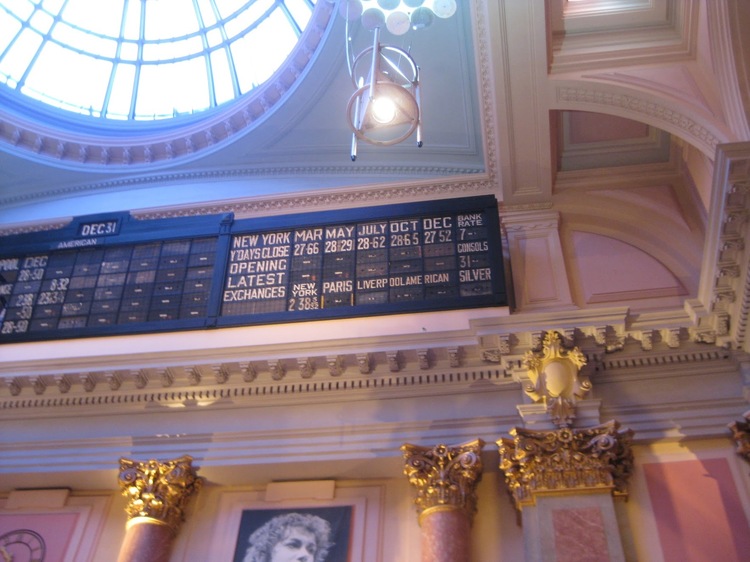 Look at the ceiling and you can see the stock prices, displayed from the very last day of trading.